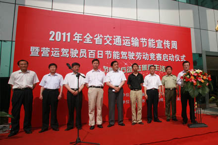 2011年6月11日上午,由山東省交通運輸廳主辦的“2011年全省交通運輸節(jié)能宣傳周暨營運駕駛員百日節(jié)能駕駛勞動競賽”啟動儀式,在濟南長途汽車總站東廣場隆重舉行。來自省交通運輸廳、省節(jié)能辦、市交通運輸局的有關(guān)領(lǐng)導(dǎo)出席了活動,并在發(fā)車現(xiàn)場向客車駕駛員發(fā)放節(jié)能駕駛手冊等宣傳資料。集團公司總經(jīng)理、黨委副書記王謙出席活動并講話。