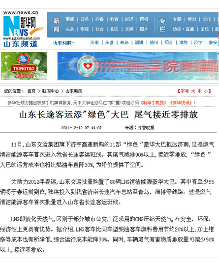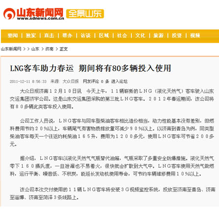 12月6日—9日,集團公司組織了以“山東交運集團80余部燃氣清潔能源環(huán)保客車助力春運”為主題的聯(lián)合新聞采訪活動。山東電視臺、濟南電視臺、《大眾日報》、《齊魯晚報》、《現(xiàn)代交通報》、《濟南日報》、《濟南時報》、《交通廣播》等8家新聞媒體紛紛派出記者組成聯(lián)合新聞采訪團,對集團公司本次購進燃氣清潔能源環(huán)保客車工作,從環(huán)保、節(jié)能、安全等方面,以關(guān)注民生、行業(yè)發(fā)展、春運動態(tài)等角度進行了深入采訪。