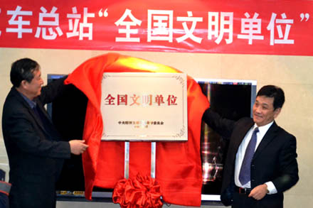 2012年1月18日,省文明辦、省國資委文明辦共同在山東交運集團濟南長途汽車總站舉行“全國文明單位”揭牌儀式,省文明辦副主任、活動協調處處長宮松章,活動協調處科長張云峰,省國資委黨委宣傳與群眾工作部部長胡兵,調研員張慶旭,集團公司董事長、黨委書記吳宗昌、總經理、黨委副書記王謙,黨委副書記楊國強出席了揭牌儀式。