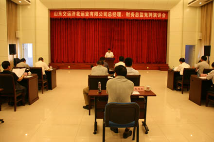 根據《山東交運集團濟北運業有限公司公開選聘工作實施方案》有關規定,6月8日,集團公司在多功能廳舉行濟北運業有限公司總經理、財務總監競聘演講會。集團董事、領導班子成員、財務總監、監事和臨邑縣交通局代表,共15人擔任了競聘演講的評委。