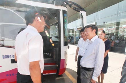 何部長在山東交運濟南長途汽車總站先后視察了售票處、總服務臺、候車廳、安全報班處及集團安全運營監控中心,詳細了解集團企業文化建設、精神文明建設及安全生產相關措施,親切慰問了黨的十八大代表、省交通系統勞動模范李文,山東省勞動模范、安全行車367萬公里無事故安全標兵賈湘鳴等一線員工。