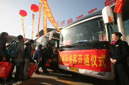 新服務(wù)新形像 新開通的濟(jì)南至萊蕪城際快客投入全新高一級(jí)豪華客車,統(tǒng)一形象。所有駕駛員全部經(jīng)過嚴(yán)格規(guī)范的培訓(xùn),統(tǒng)一著裝,佩戴工牌上崗。車內(nèi)配備飲水機(jī)、投幣機(jī)、車載電視、報(bào)刊雜志等便民設(shè)施。班車還充分融合航空、公路高速客運(yùn)和城市公交的服務(wù)優(yōu)勢(shì)和特點(diǎn),播放服務(wù)項(xiàng)目、優(yōu)惠措施、安全提示宣傳片,采用站點(diǎn)語(yǔ)音播報(bào),設(shè)置特殊旅客乘坐區(qū),張貼公開服務(wù)承諾及監(jiān)督電話:(0531—85972710)。