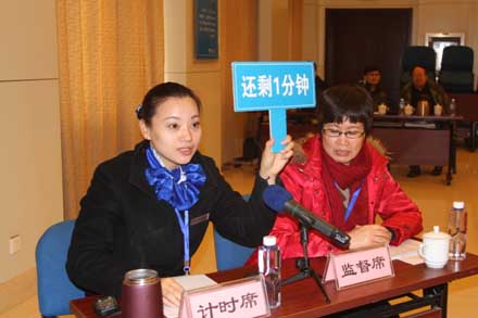 演講答辯按照競聘職位分組進行,共設1個主會場、4個工作室,會前通訊工具統一保管,考前、考后人員不得隨意外出,相互不見面、不交流,確保了考場紀律和公平性。每位競聘人員通過10分鐘的演講介紹自己的基本情況、工作簡歷、競爭優勢、工作實績和對競聘崗位工作的設想,并在5分鐘內完成審題、思考和答辯。評委按照《演講答辯評分表》的標準進行現場打分,每組職位演講答辯結束后統一匯總計分。