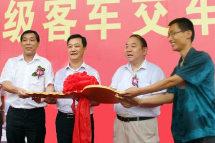 9月2日,山東交運(yùn)集團(tuán)與中國(guó)重汽集團(tuán)在章丘工業(yè)園區(qū)舉辦了高等級(jí)客車交車儀式,集團(tuán)公司董事長(zhǎng)吳宗昌、總經(jīng)理王謙、重汽集團(tuán)董事長(zhǎng)馬純濟(jì)、總經(jīng)理蔡?hào)|等領(lǐng)導(dǎo)參加了儀式。此次集團(tuán)與中國(guó)重汽簽約共購進(jìn)77部新車,主要用于通勤和旅游服務(wù)。