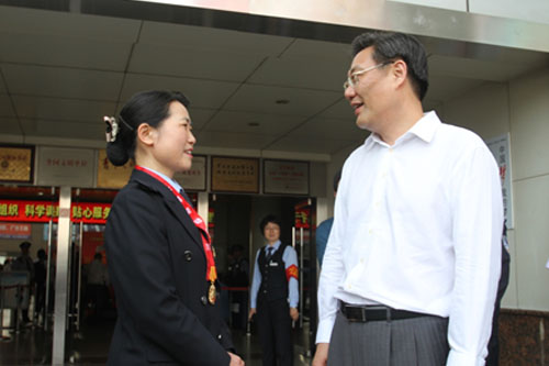 王文濤書記一行先后調(diào)研了安檢處、總服務臺、駕駛員報班處以及集團公司安全監(jiān)控中心,詳細了解了車站安全檢查、便民服務、班車安全運行等方面的具體工作部署。在監(jiān)控中心,吳宗昌董事長就王文濤書記關(guān)心的問題進行了具體匯報,并重點介紹了集團班車安全運行監(jiān)控的情況。臨行前,王文濤書記與總站總服務指導師、黨的十八大代表、全國勞動模范李文同志進行了親切交談,對她多年來所做出的努力與成績給予高度評價,并鼓勵她不斷帶動和感染身邊的人,將無私奉獻、艱苦奮斗的精神發(fā)揚廣大。