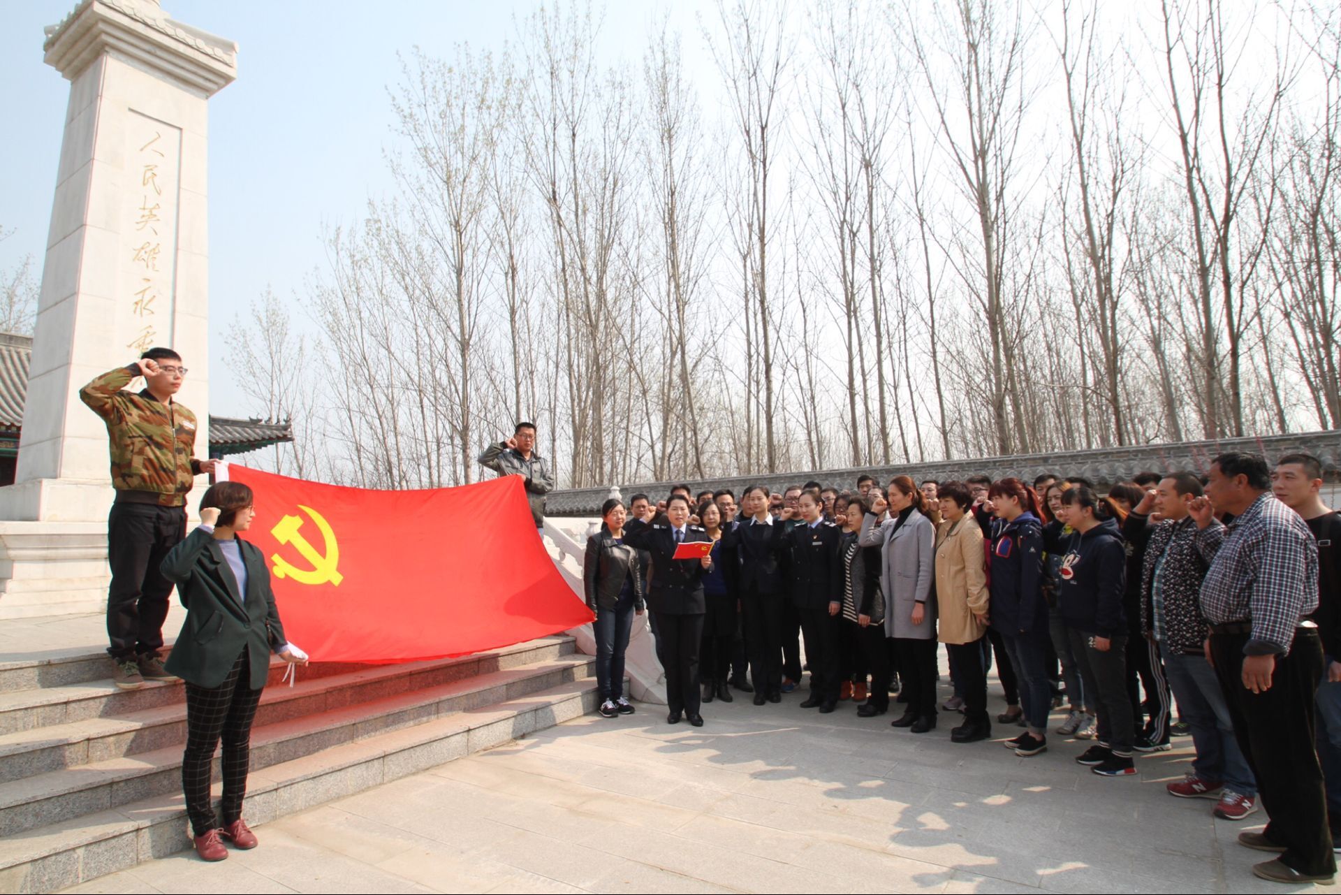 在琉璃寺戰(zhàn)斗紀(jì)念館,全體人員在高聳的革命烈士紀(jì)念碑前面對(duì)鮮紅的黨旗,莊嚴(yán)地舉起右手,重溫了入黨誓詞。聊城市道德模范,琉璃寺陵園二代義務(wù)守陵人張?jiān)黄竭M(jìn)行了全程講解,回顧了其父自20多歲起就幾十年如一日義務(wù)守陵,并將此當(dāng)成一項(xiàng)神圣的事業(yè),現(xiàn)在由自己繼續(xù)為烈士堅(jiān)守,在整個(gè)過(guò)程中,他的眼中始終充滿了自豪和驕傲。同志們參觀了紀(jì)念館展廳,在趙伊坪、秦寶山等烈士生平事跡介紹前駐足、聆聽(tīng)、凝神觀看,深切緬懷革命烈士的豐功偉績(jī),為烈士們堅(jiān)定的信念、英勇的壯舉、崇高的精神而感到震撼。