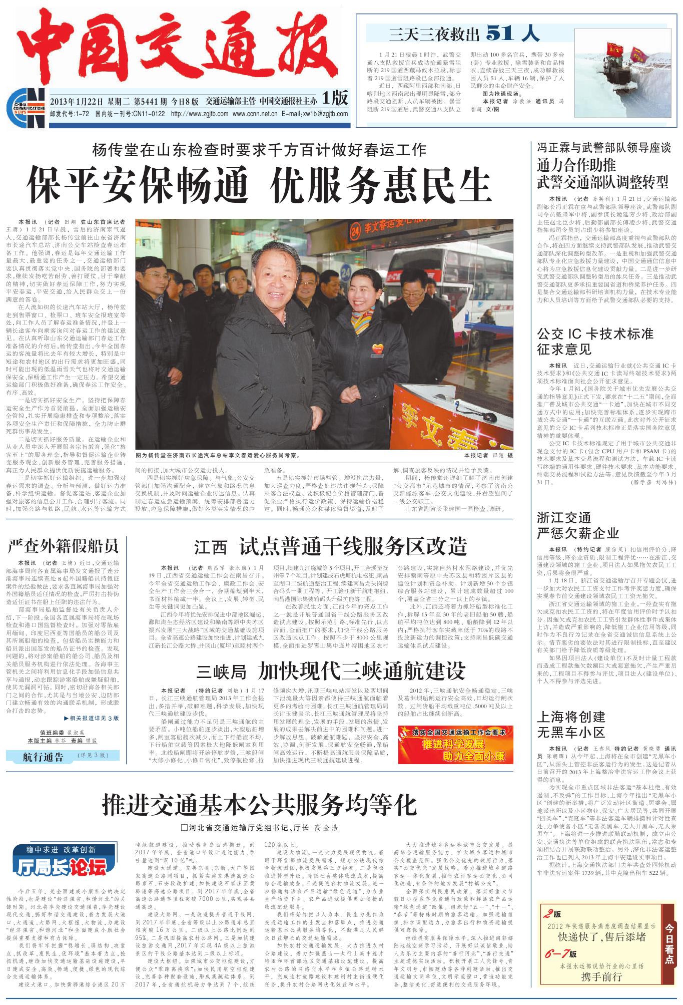 《中國交通報》——交通部部長楊傳堂視察山東交運集團春運工作